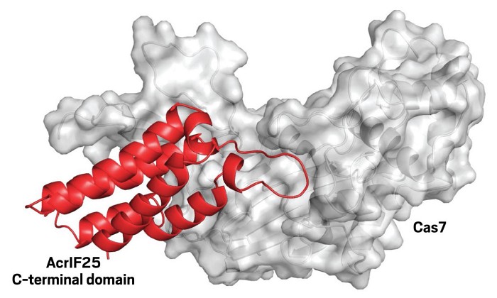 A team of researchers led by Alan Davidson at the University of Toronto have discovered a small protein that can disassemble a stable bacterial CRISPR-Cas7 complex without using adenosine triphosphateor another apparent energy source (Nature 2024, DOI: 10.1038/s41586-024-07642-3). The protein, dubbed AcrIF25, comes from a bacteriophage, and the CRISPR-Cas7 complex it attacks comes from the bacterium Pseudomonas aeruginosa. A team led by Yanli Wang of the Chinese Academy of Sciences solved the structure of the protein.