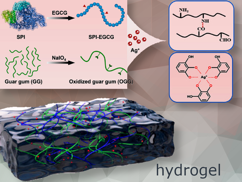 Xiaonan Sui, Northeast Agricultural University, China, and colleagues have developed a strategy to improve the functional properties of soy protein-based hydrogels. This approach involves modifying soy protein isolate (SPI) with epigallocatechin-3-gallate (EGCG) and forming a dynamic Schiff base between oxidized guar gum (OGG) and EGCG (pictured above). To further strengthen the hydrogel, silver ions are also introduced through metal-ligand bonds with the catechol groups of EGCG.