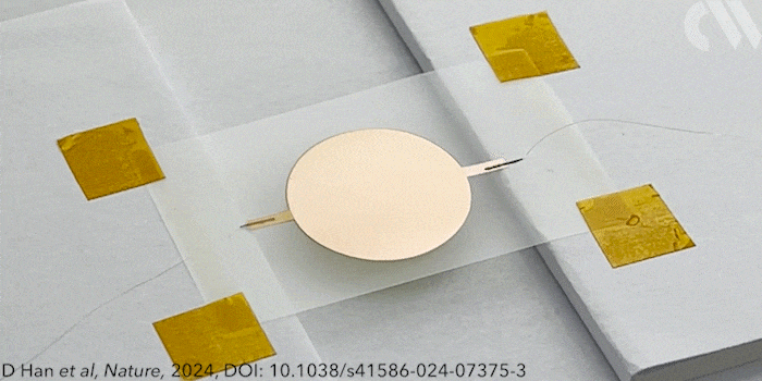 Applying an electrical field changes how disordered and strained the material is. That causes it to take in heat next to one surface, change shape to touch a different surface, release heat, then return to its original shape to start again. While the SJTU team has made films several square metres in area, they focus on circular films 20mm in diameter to cool down electronic chips.
