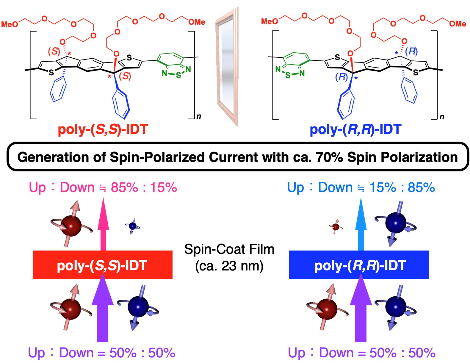 Previous polymer films showing strong spin polarization have required complex preparation processes, so the simple formation of the IDT copolymer films is a clear advantage. The developed films are promising for use in the emerging field of spintronics research. It is anticipated that IDT copolymers will be useful in advanced clean energy technologies that use spin-polarized currents.