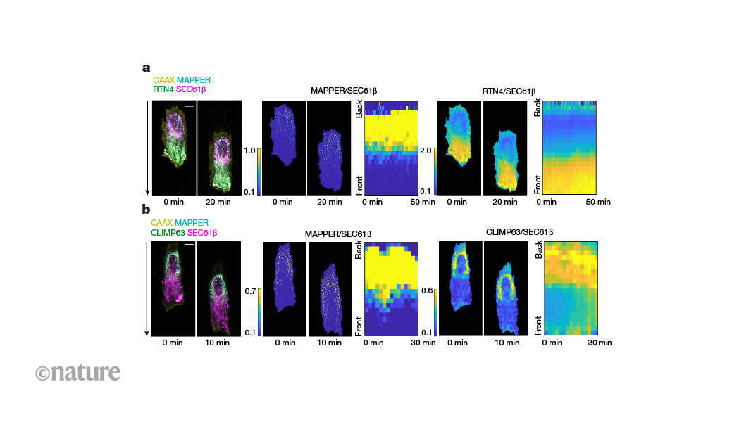 Migrating cells must determine where to form a front end and a back end. A gradient in contact sites between the cell membrane and an organelle called the endoplasmic reticulum (ER) is generated by a gradient of ER curvature and is required to guide and control migration speed.