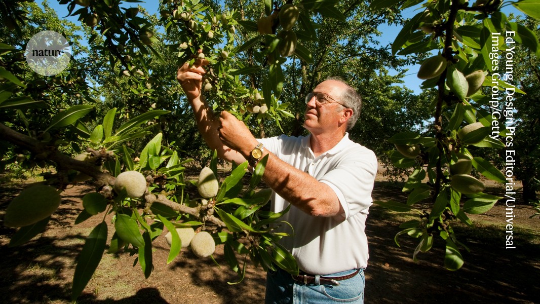 Almond farmers in California are under pressure to reduce the amount of water they use.Credit: Ed Young /Design Pics Editorial/Universal Images Group/Getty