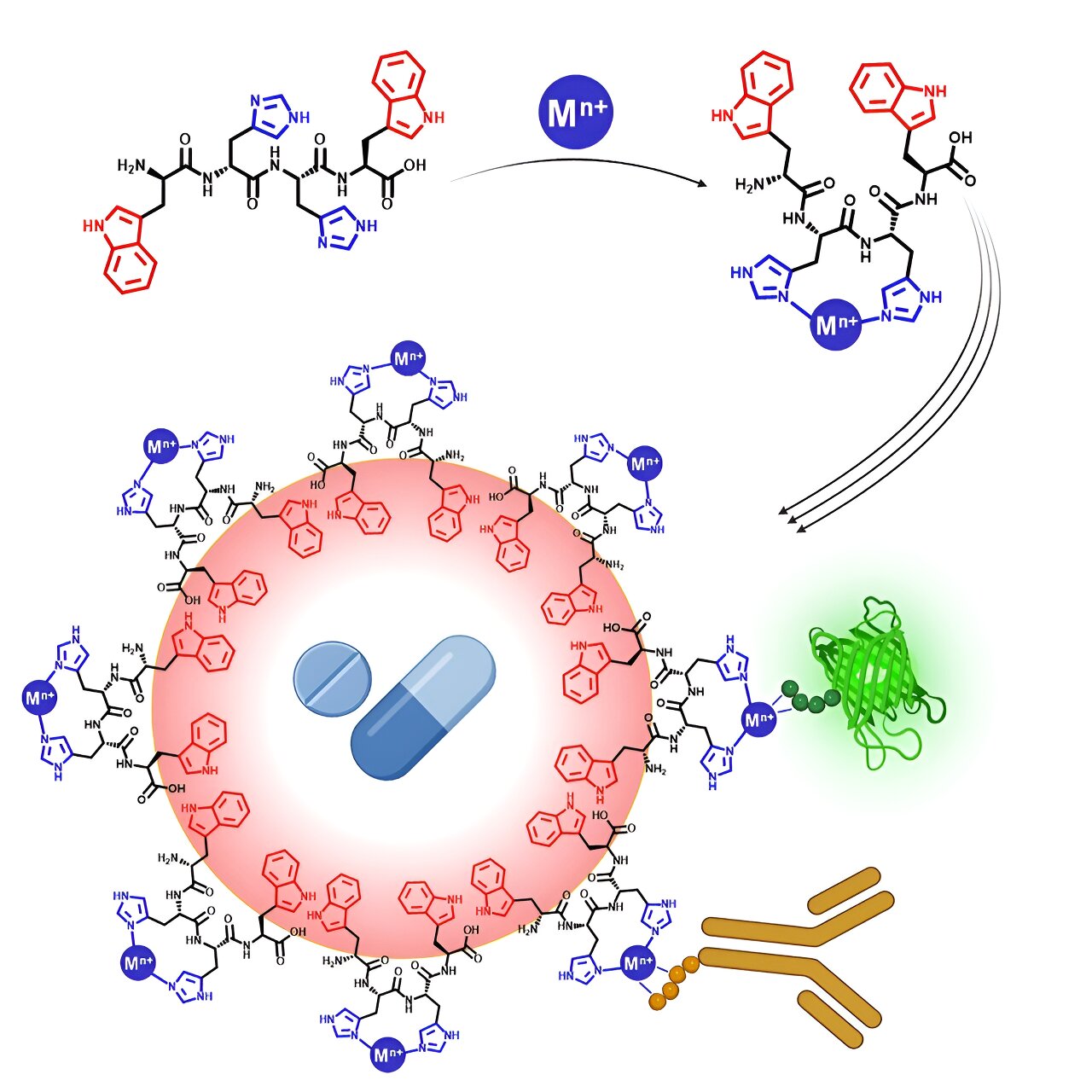 The heart of this innovation lies in the peptide’s remarkable ability to alter its shape upon binding specific metal ions, transforming from hydrophilic to amphiphilic. This molecular metamorphosis not only stabilizes emulsions containing water-insoluble drugs but also facilitates the delivery of water-soluble metal ions attached to the peptide.