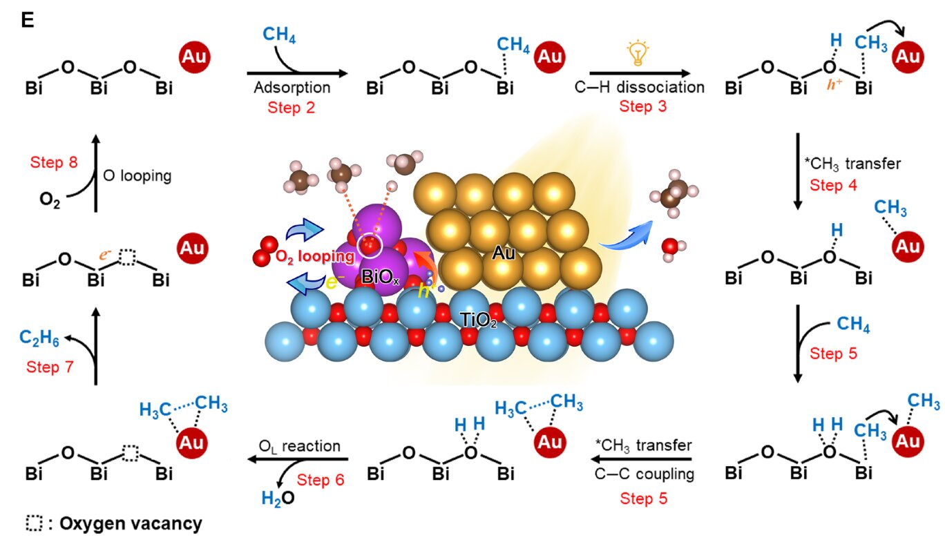 Researchers have developed a novel catalyst Au/BiOx-TiO2 for efficient, selective and stable photocatalytic light-driven oxidative coupling of methane (OCM).