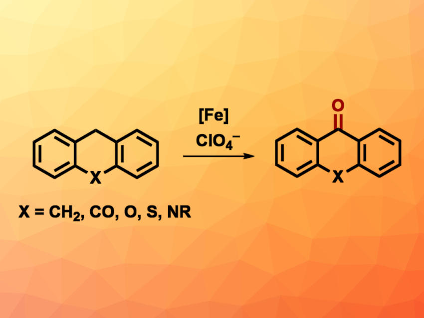 Nathaniel K. Szymczak, University of Michigan, Ann Arbor, USA, and colleagues have developed a method for the iron-catalyzed C–H oxygenation of organic substrates using perchlorate ions (general reaction pictured). The team used iron(II) complexes with tris(2-pyridylmethyl)amine (TPA)-type ligands featuring aniline-based H-bond donors as catalysts to promote the reduction of the perchlorate ions. The team optimized the reaction conditions for the oxidation of anthracene and used a ligand with tert-butyl groups at the aniline unit, [NBu4][ClO4] as the chlorate source, AgOTf to capture the formed chloride ions, and EtCN as the solvent. The reactions were performed at 120 °C under a nitrogen atmosphere.