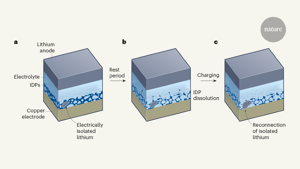 In lithium-metal batteries, grains of lithium can become electrically isolated from the anode, lowering battery performance. Experiments reveal that rest periods after battery discharge might help to solve this problem.