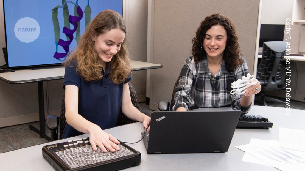 O.S., who has been blind since birth, enrolled to do a chemistry degree at the University of Delaware in Newark in late 2019. She was fascinated by the idea of conducting computational chemistry research, but was unsure of the process and the potential challenges that the work would present with regard to accessibility. Surely working with hazardous chemicals, fragile glassware and complicated equipment would pose substantial barriers for her and her guide dog, Ripple. Then, a Research Experiences for Undergraduates programme for chemists with disabilities provided O.S. the opportunity to engage in research in an environment that was conscious of her abilities and needs. The programme’s coordinators connected O.S. with J.H.-P., whose computational structural-biology projects offered an alternative to benchwork.