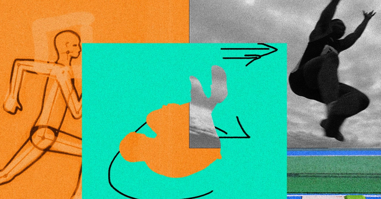 So athletes use a few different techniques to counter this rotation. The first is to lean back in the jump—this moves the center of mass closer to the contact point of the foot, thus reducing torque. But it also slows you down. Another is the hang technique, where the jumper extends their arms and legs like a giant sail in the air. As we’ve seen, that increases their moment of inertia, perhaps at the cost of some extra wind drag.